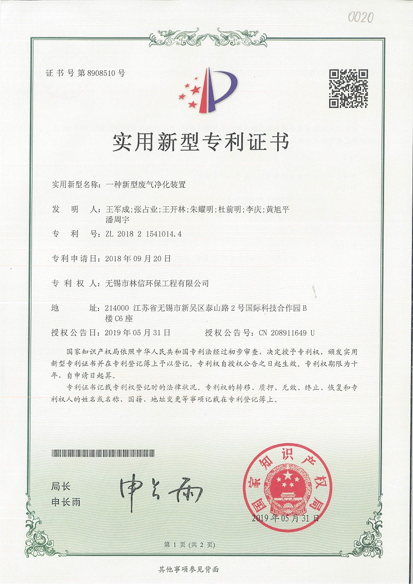公司具有環保工程專業承包叁級資質、江蘇省環境污染治理能力評價證書、安全生產許可證(建筑施工),于2013年通過ISO9001國際質量管理體系認證,被評為“高新技術企業”、 “中國科技創新型中小企業100強”、“重質量、守信譽誠信施工單位”和“江蘇省十佳環保工程施工企業”。公司獲發明專利、實用專利等共計18項。公司自主開發的“污染防治設施在線監控管理系統”獲得“科技型中小企業技術創新基金立項證書”并通過驗收。